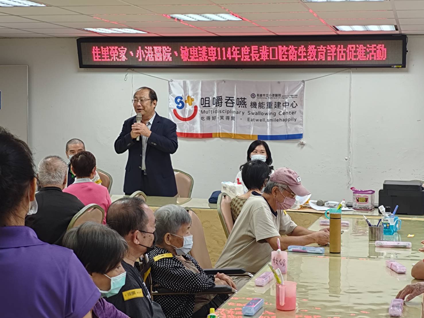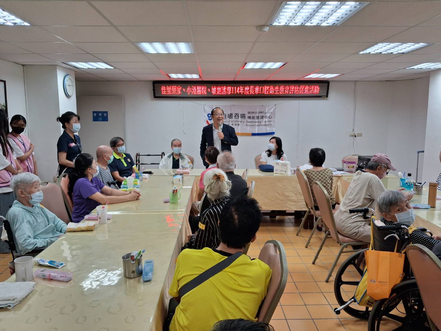 為提升長者口腔健康與生活品質,佳里榮譽國民之家於本(28)日與小港醫院及敏惠醫護管理專科學校共同舉辦「114年度長輩口腔衛生教育評估促進活動」。當日由佳里榮家陳宗貴家主任、小港醫院馮明珠副院長及敏惠醫專孫逸民校長共同主持,三方攜手推動長輩口腔健康促進工作,展現醫學專業結合長照機構的合作成果。